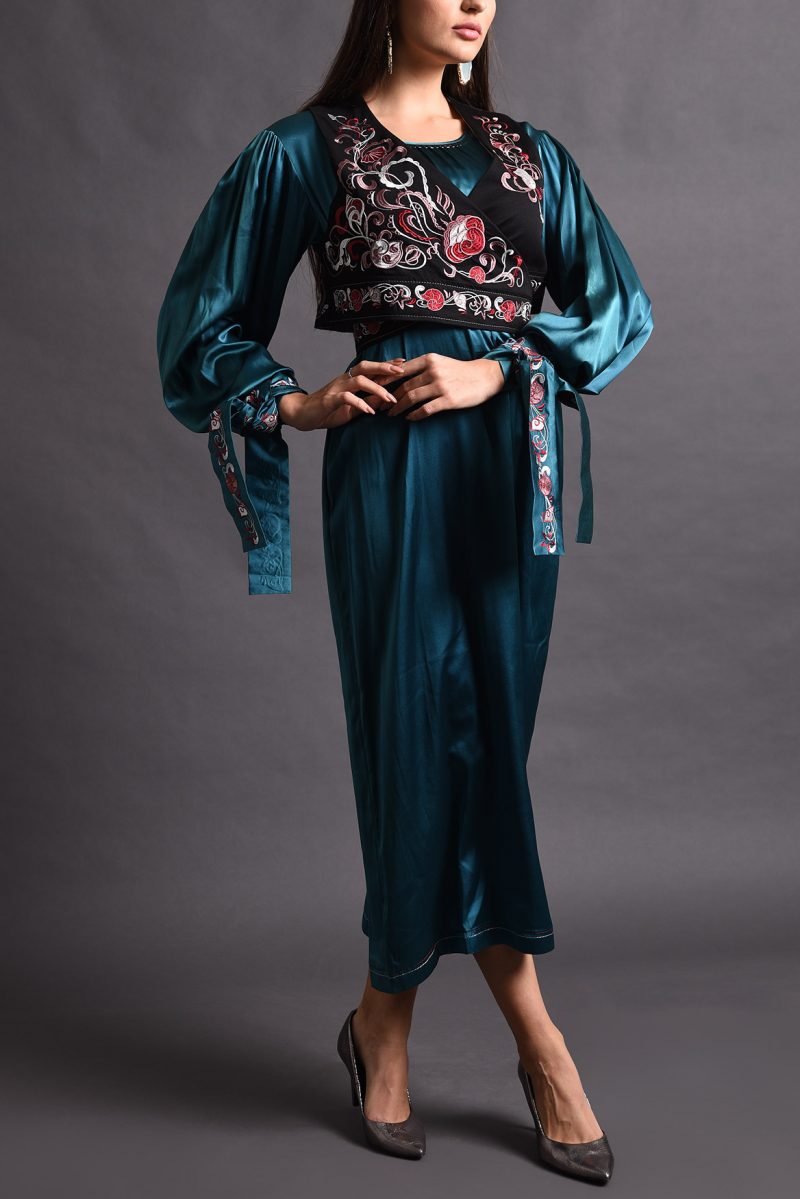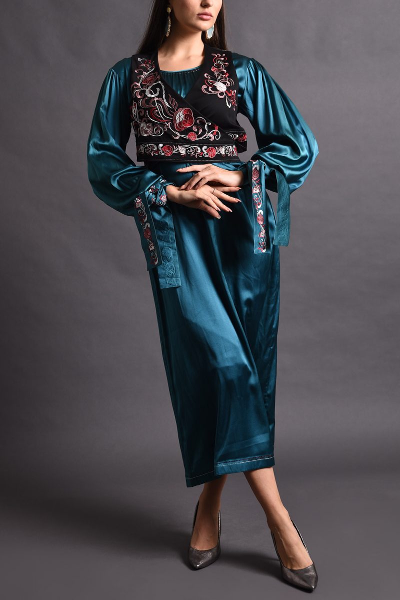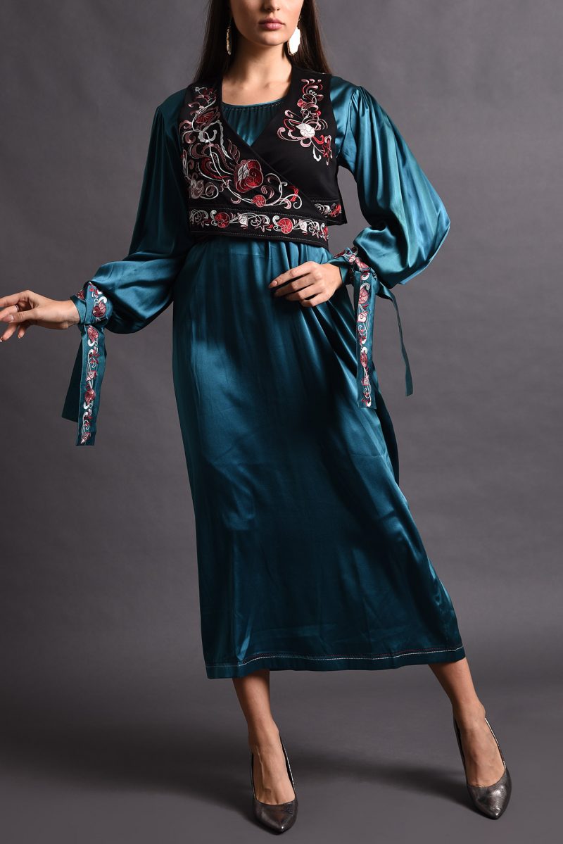 Satin Dress with Embroidered Vest